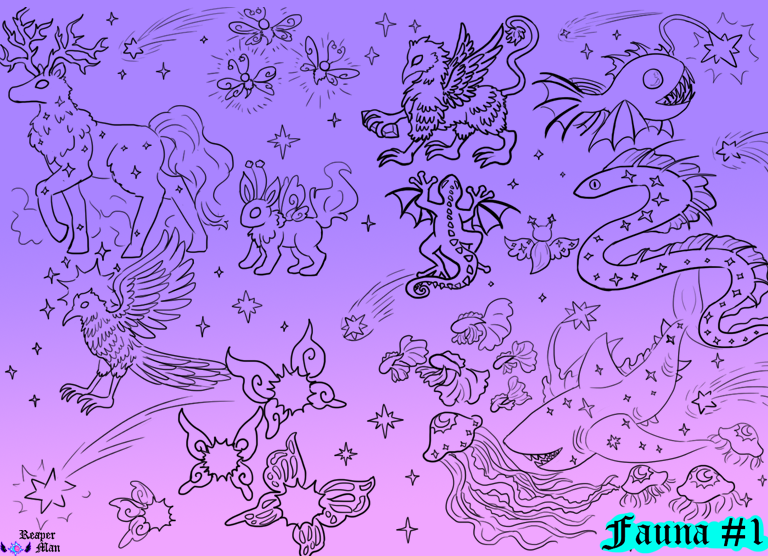 Celestial plant life is abundant in Arcturus. Biomes are varied, from temperate forests to arid deserts; but they're all full of beautiful bioluminescent plants, bright and lively, beaming energy they dance to the wind and illuminate unexpected paths to visitors as well as those coming back to their home in Arcturus. They are purely magical beings, eternal, and do not wither. With every change of the seasons their pigmentation changes, some go dormant, some become bigger and brighter