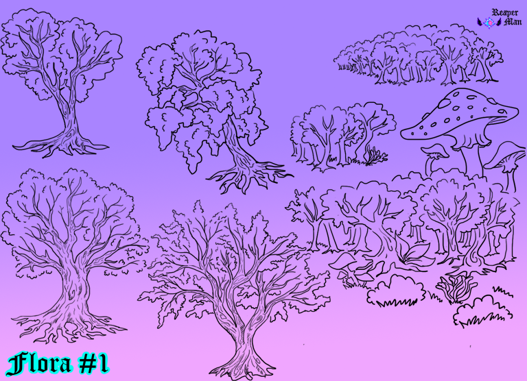 Trees are incredibly big; and forests are incredibly dense. All trees are very animated beings who have their own thoughts and needs, and guardian trees are protectors of the forests, they are capable of becoming a more humanoid spirit but they usually stay in their forest. Flowers and crops love collaborating with the fae and together they create beautiful farms and houses in the wild, and provide food for those who like to eat; because most beings in Arcturus don't really have the need to, it is a social event that many enjoy.